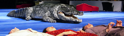 Mehrere lebensgroße Krokodile mischen sich unter die illustre Gesellschaft und